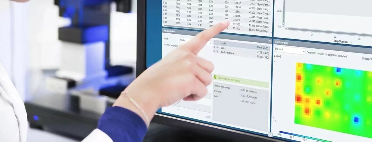 检查晶片表面的质量时,材料的性质必须不能被改变。使用我们的液滴形状分析仪进行超纯水的接触角测量可对晶片进行无损测试。作为润湿性的量度,即使最小的表面结构变化,接触角也会对其有灵敏反应。